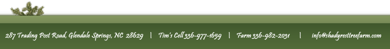 Shady Rest Tree Farm will open for Choose and Cut on Saturday November 23rd at 9am for our 30th season. With two locations and over 30,000 trees to choose from, finding the perfect tree will not be a problem. Mail order customers can purchase trees up to seven feet while trees up to 20 feet are available for Choose and Cut shoppers. Tree types include Fraser Fir, Nordmann Fir, Korean Fir, Concolor Fir, Turkish Fir, Canaan Fir, Colorado Blue Spruce and White Pine. We'll see you at the farm!